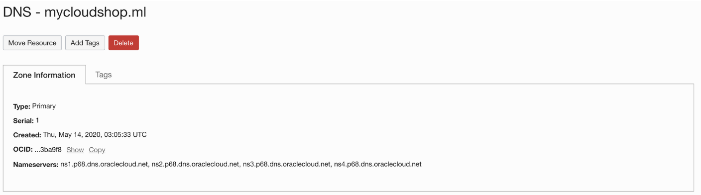 Name Server는 Oracle Cloud의 DNS Name Server로 변경한다. 그러기 위해서는 오라클 클라우드의 DNS Zone을 생성한다. Zone 이름은 위에서 구매한 도메인 이름을 사용한다.