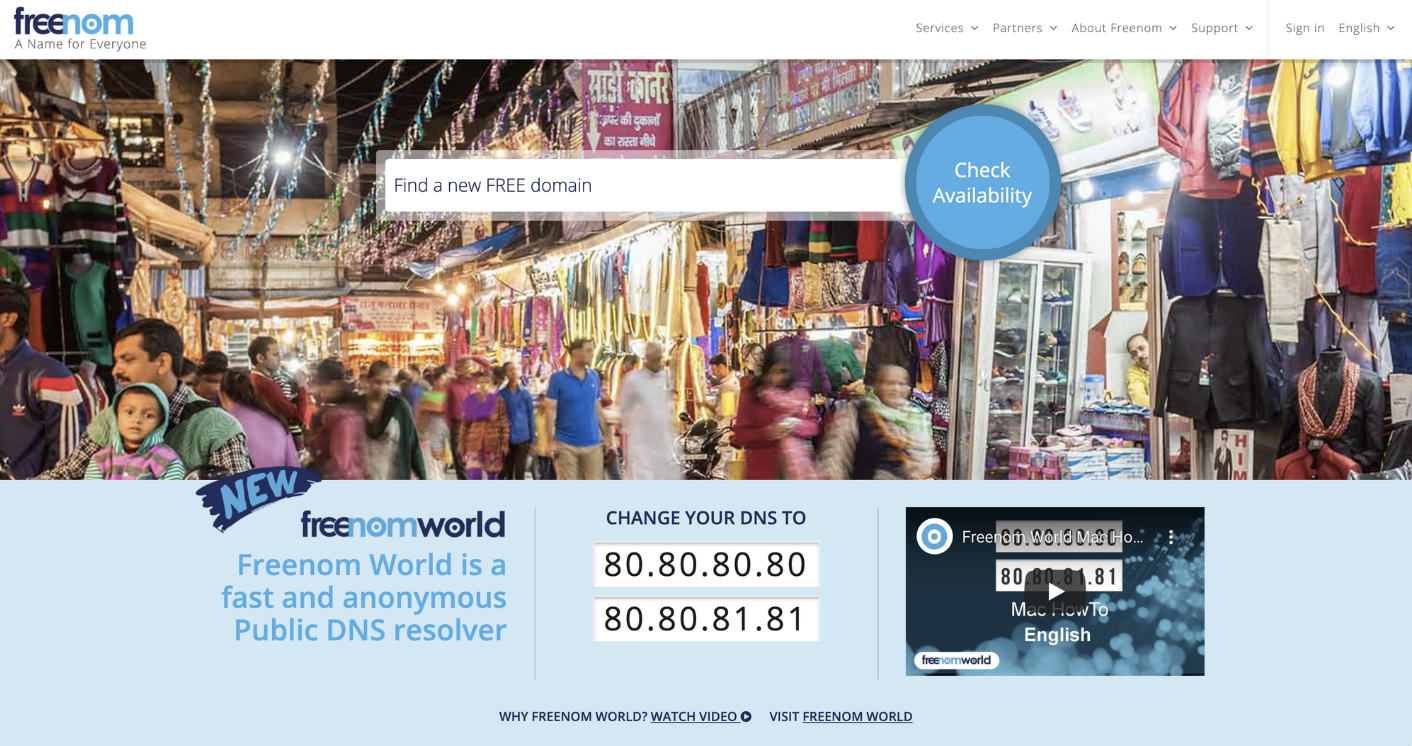 무료도메인을 제공하는 곳이 여러 곳이 있지만, 그중에 freenom이라는 사이트에서 최상위 도메인을 무료로 사용을 할 수 있다.