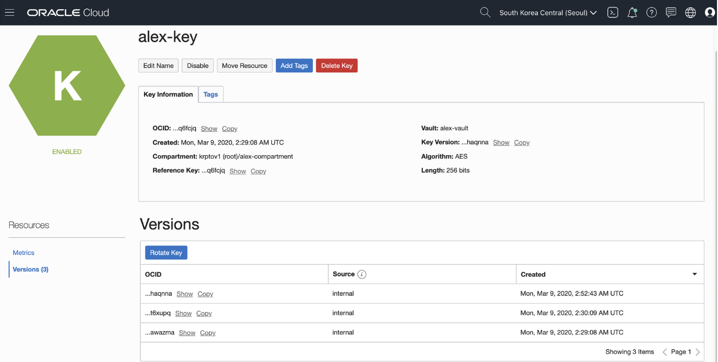 Key는 Rotate가 가능하며 Rotate를 시킬 경우 version으로 관리가 된다.