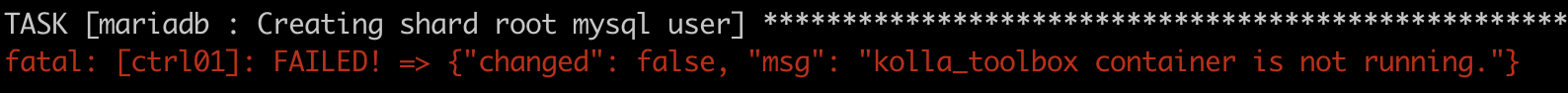 kolla-ansible로 배포시 kolla_toolbox container is not running 에러가 발생하면서 mariadb task에서 멈추는 문제가 발생하였다.