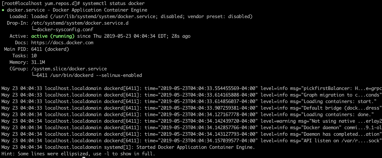 systemctl status docker