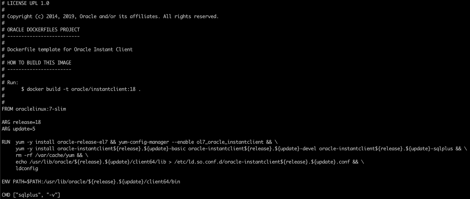 docker build -t oracle/instantclient:18 .