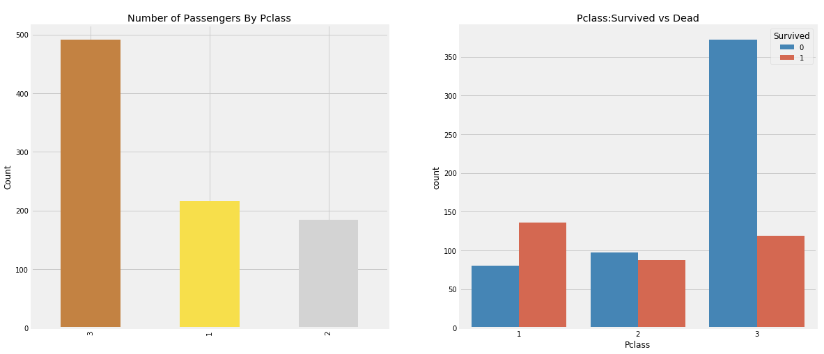 data['Pclass'].value_counts().plot.bar(color=['#CD7F32','#FFDF00','#D3D3D3'],ax=ax[0])