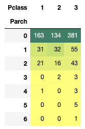 부모와 자식이 없는 승객 중 3등급 객실에 승객수가 제일 많다는 것을 확인할 수 있고, 부모와자식이 있는 승객 역시 3등급 객실에 많이 탄 것을 확인 할 수 있다.