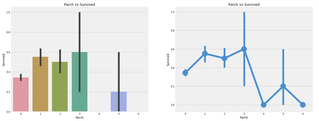 부모와 자식이 있는 승객(Parch)에 대한 데이터 분석을 해본다.