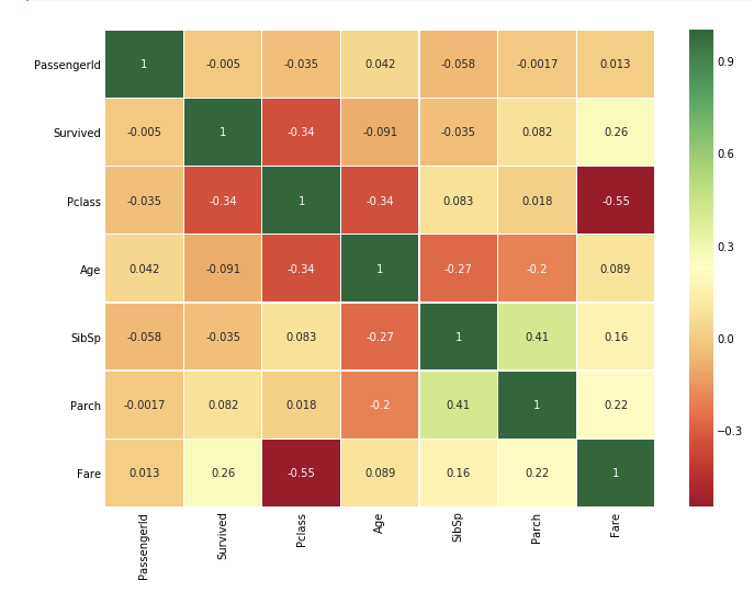 상관관계는 하나의 feature가 다른 feature와 연관이 될 때, Positive가 될 경우 해당 feature들은 비슷하다라고 판단이 된다. Parch와 SibSp의 관계가 0.41로 높은 Positive를 보이고 있고 다른 관계들은 크게 관계가 없어 보이기 때문에 전체 feature로 분석을 한다.
