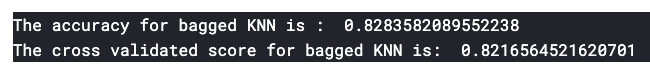 print('The cross validated score for bagged KNN is: ',result.mean)