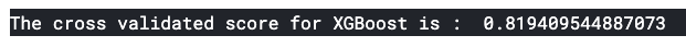print('The cross validated score for XGBoost is : ',result.mean())