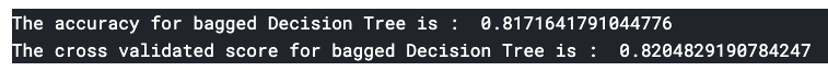 print('The cross validated score for bagged Decision Tree is : ',result.mean())