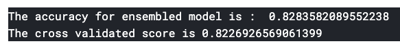 위에서 사용했던 모델들을 모두 VotingClassifier에 넣어서 Accuracy를 측정해보면 83%정도로 기존에 단독으로 돌렸던 accuracy보다 높게 나오는 것을 알 수 있다.