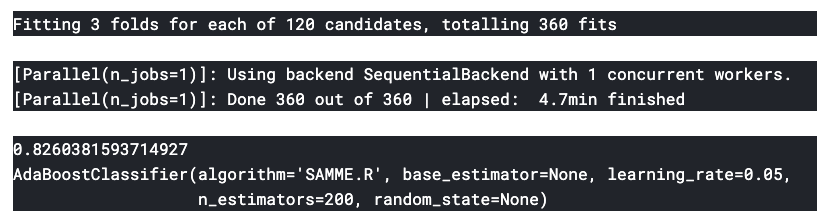 AdaBoost에서 가장 좋은 accuracy를 얻었기 때문에 AdaBoost로 Hyper-Parameter Tuning을 한다.