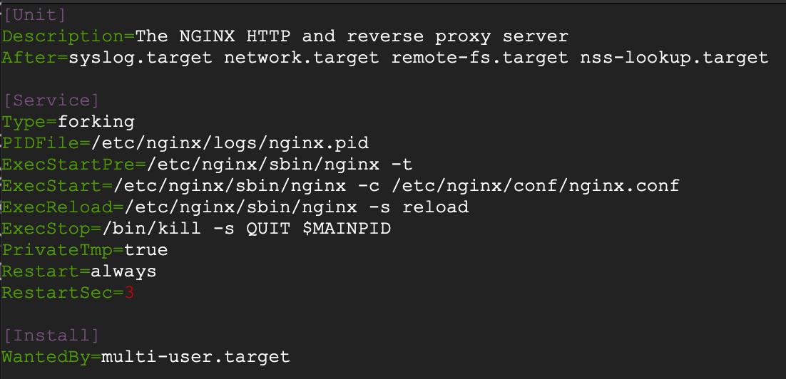 위의 기본 설정에서 [Service] 항목에 Restart=Always를 삽입하면 된다.