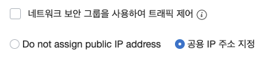 ** Default로 생성하게 되면 공인IP가 할당이 되지 않기 때문에 구성,네트워크 및 스토리지 옵션 표시 항목으로 들어가서 공용 IP 주소 지정을 클릭해야 외부에서 접근할 수 있는 IP를 할당할 수 있다.