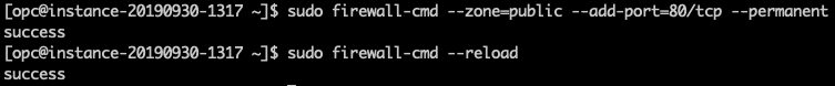 그리고 오라클 클라우드의 VM은 기본적으로 IPTABLE이 활성화 되어 있기 때문에 VM에서도 해당 포트를 열어준다. 오라클 리눅스에서는 firewall-cmd를 통해 방화벽을 설정할 수 있다. 우분투의 경우는 iptables 명령어를 통해 열어준다.